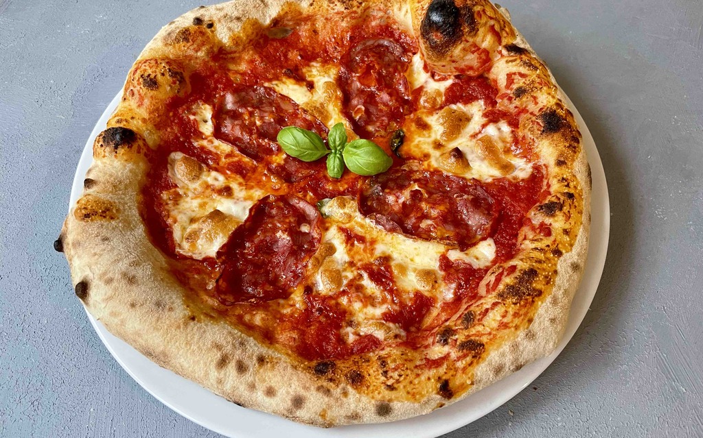 Paradicsom alap, Fior di Latte sajt, csípős szalámi, olivaolaj