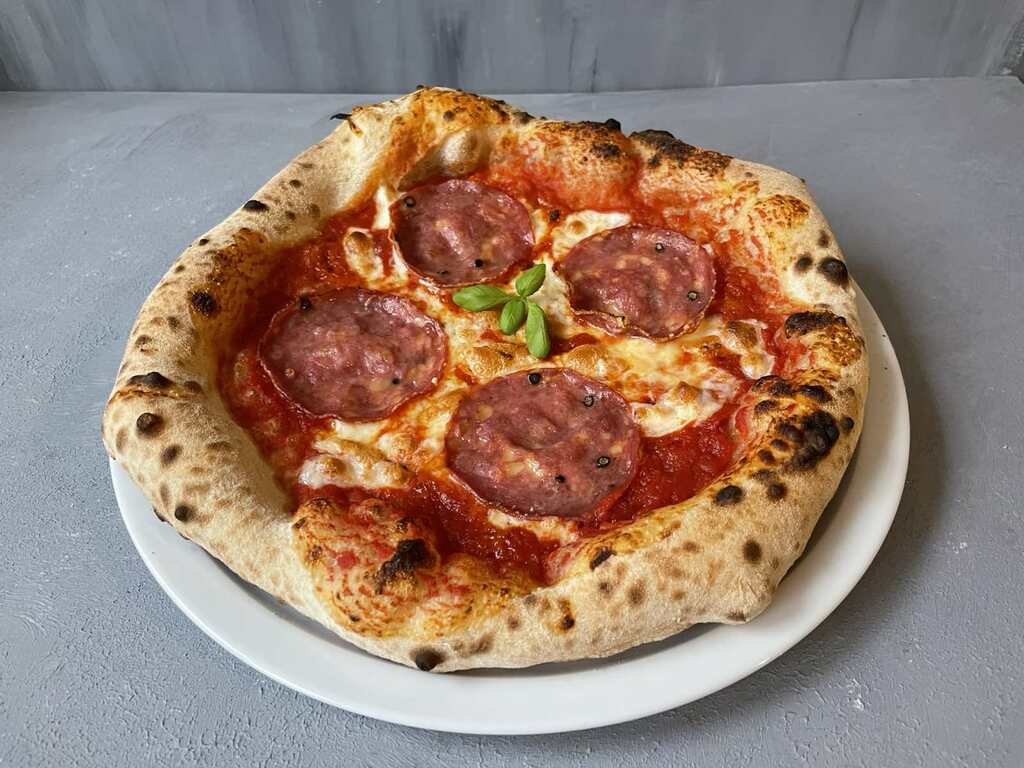 Paradicsom alap, Fior di Latte sajt, csípős szalámi, olivaolaj